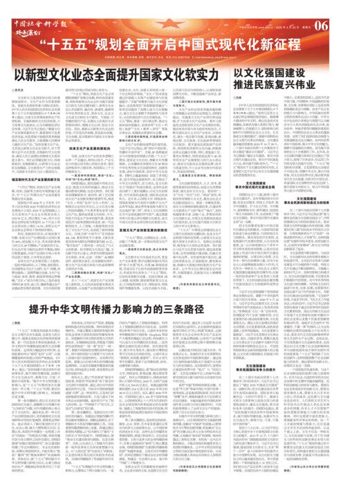 《中华人民共和国国民经济和社会发展第十五个五年规划纲要》(以下简称《纲要》)提出,“坚持马克思主义在意识形态领域的指导地位,植根博大精深的中华文明,顺应信息技术发展潮流,发展具有强大思想引领力、精神凝聚力、价值感召力、国际影响力的新时代中国特色社会主义文化,扎实推进文化强国建设”。随着中国特色社会主义现代化事业的推进,文化建设越来越受到重视。2024年10月28日,二十届中央政治局第十七次集体学习的主题是“建设文化强国”。习近平总书记强调:“建设文化强国,事关中国式现代化建设全局,事关中华民族复兴大业,事关提升国际竞争力。”“十五五”规划关于文化建设的相关内容,正是要把习近平总书记有关文化强国建设的思想落到实处。